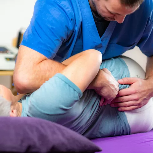 - Step 1: Improving her hip’s range of motion through targeted stretches and range-of-motion exercises